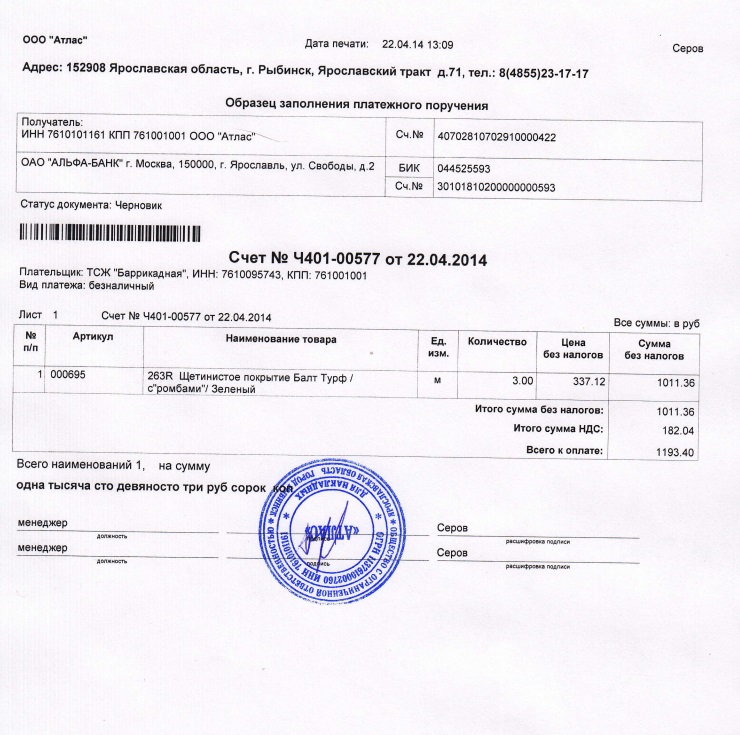 Счет Атлас апрель 2014г. покрытие противоскользящее