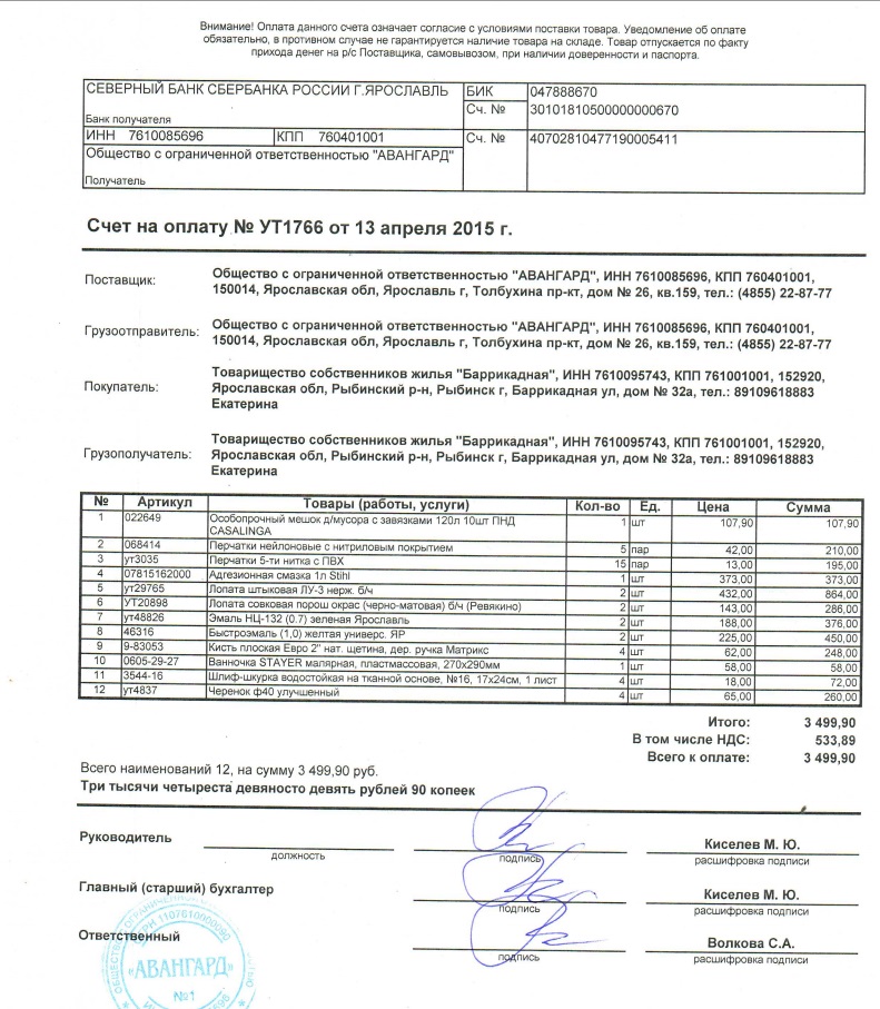 Счет Авангард (Субботник)