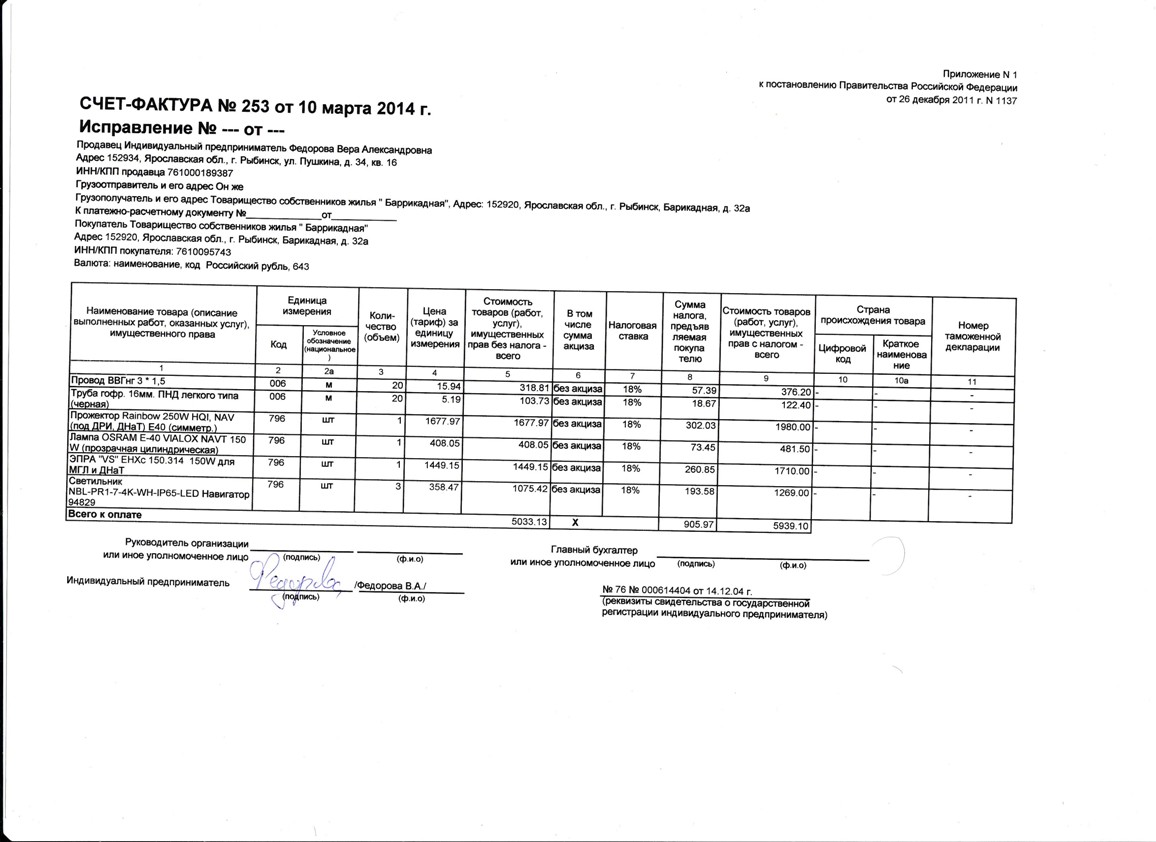 Счет Электрон март 2014г.