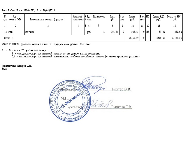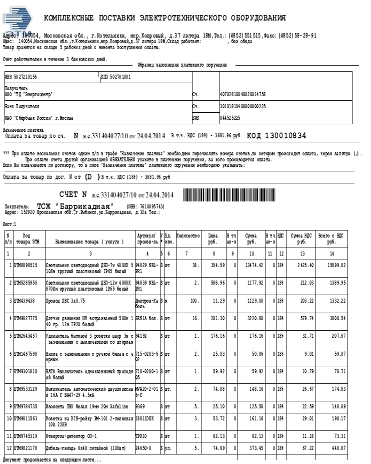 Счет ЭТМ Апрель 2014г. энергосберегающие технологии