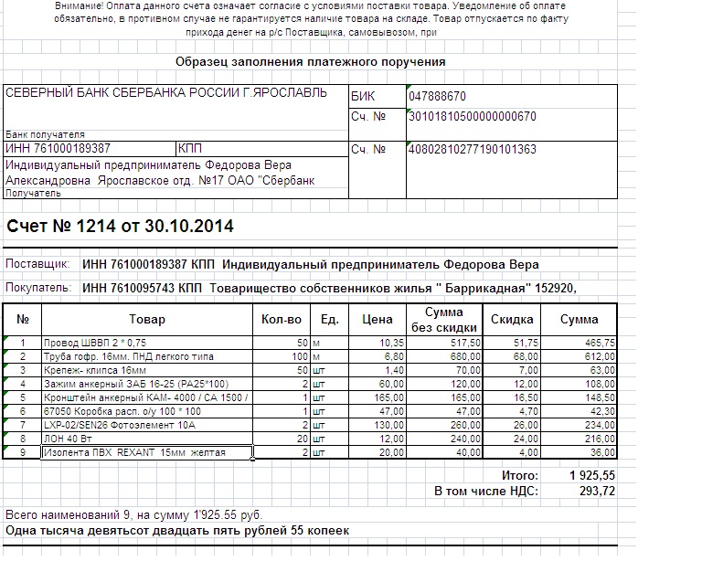 Счет расходные материалы по электроснабжению