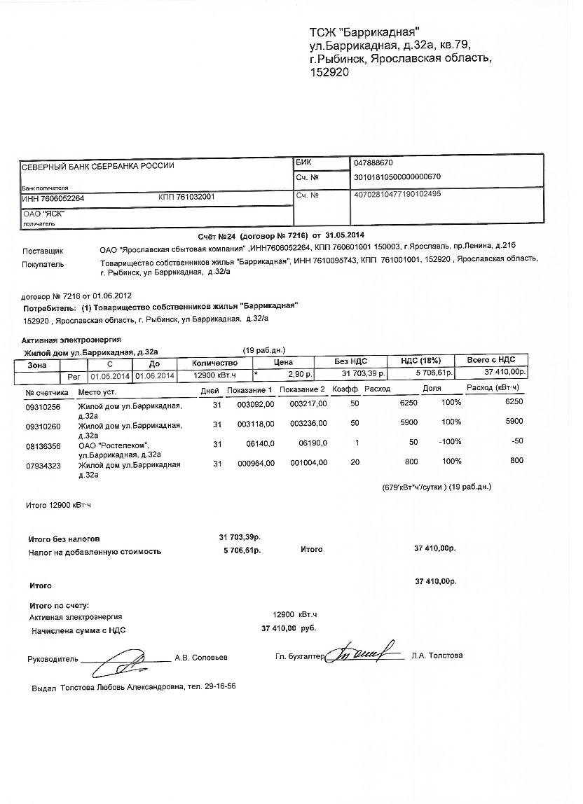 Счет ЯСК Май 2014г.