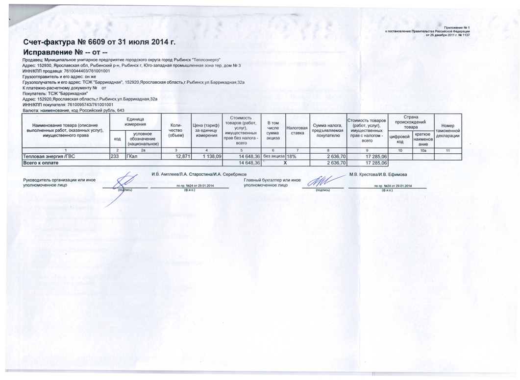 Счет МУП Теплоэнерго Июль 2014г.
