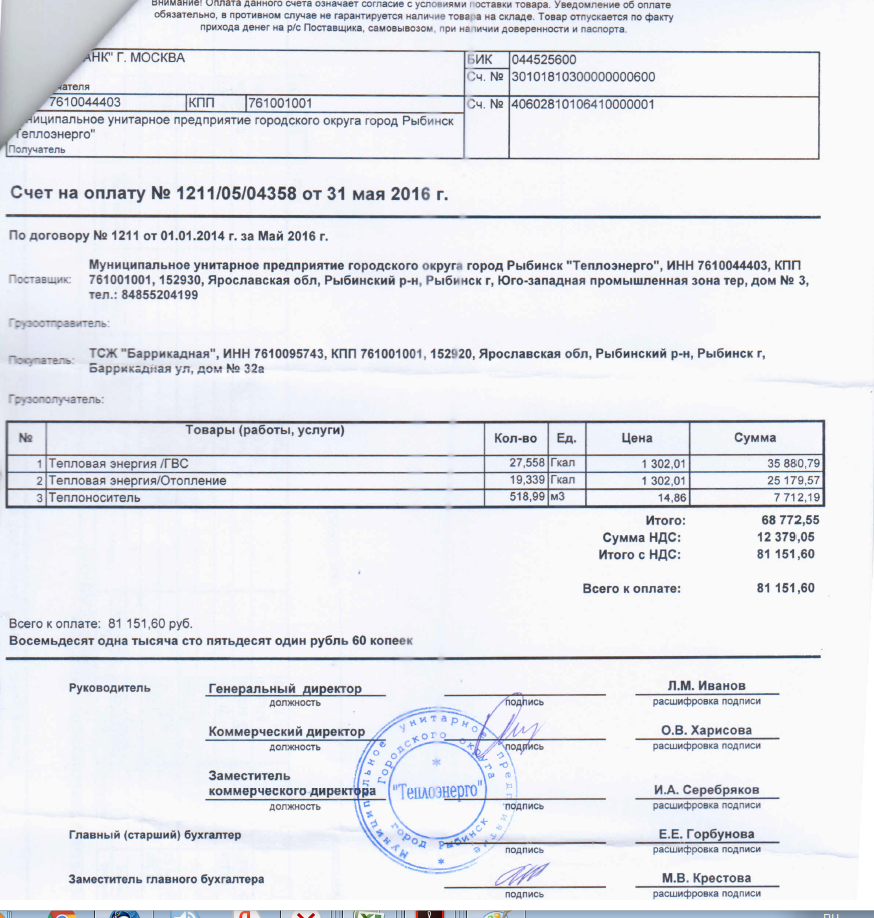Счет МУП "Теплоэнерго" май 2016г.