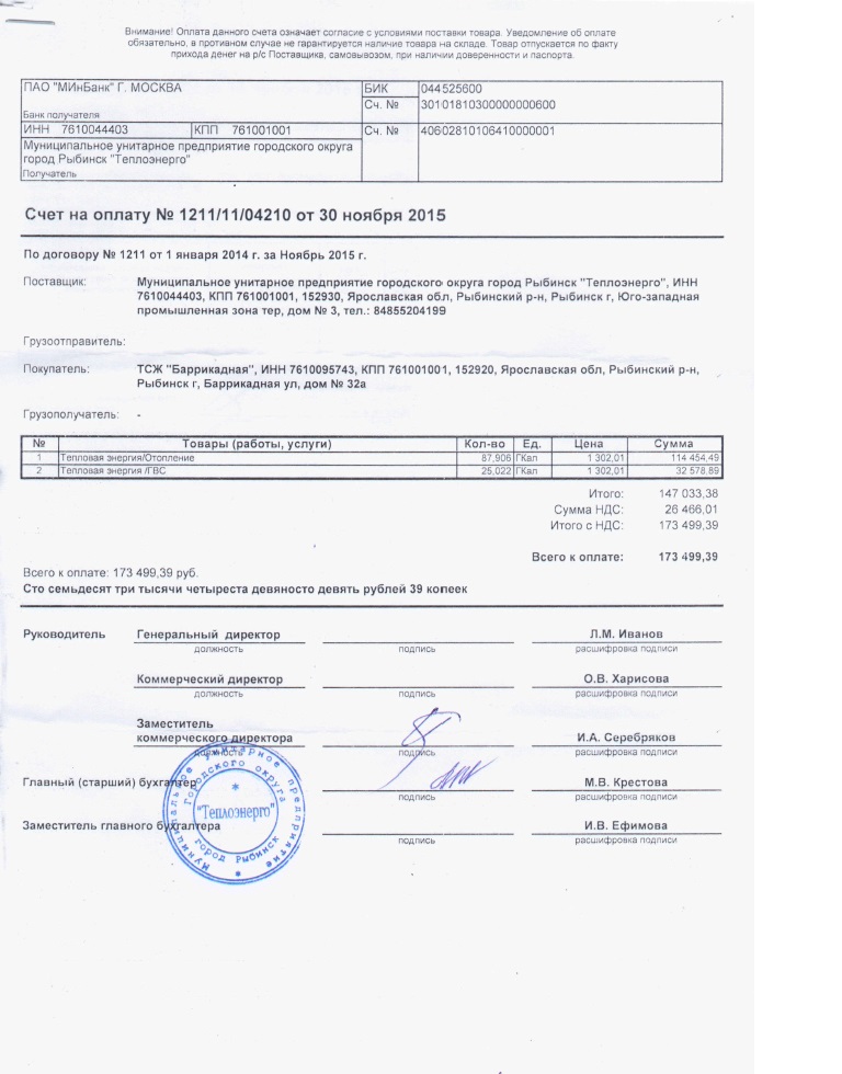 Счет МУП "Теплоэнерго" Ноябрь 2015г.