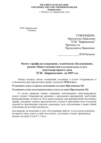 Тарифы, планы работ, отчеты ревизионной комиссии