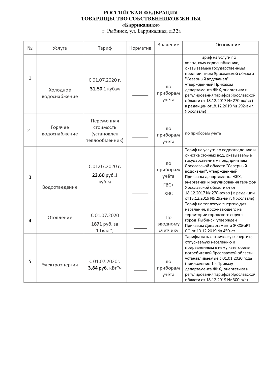 Тарифы, планы работ, отчеты ревизионной комиссии