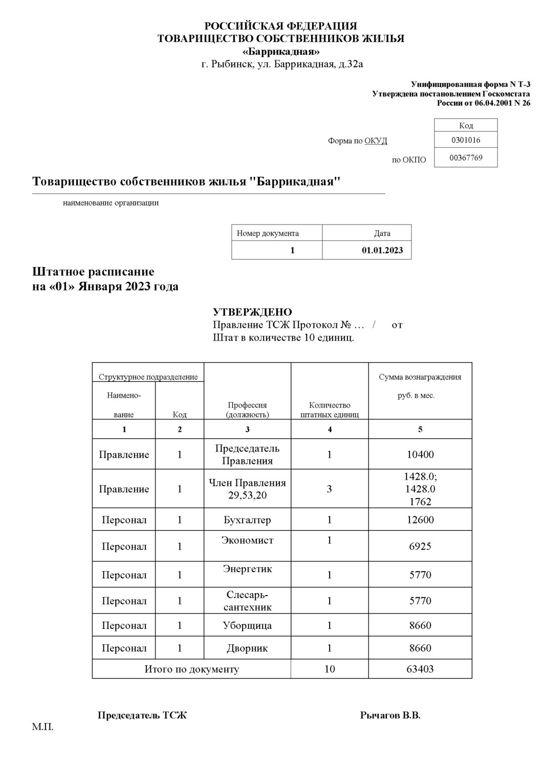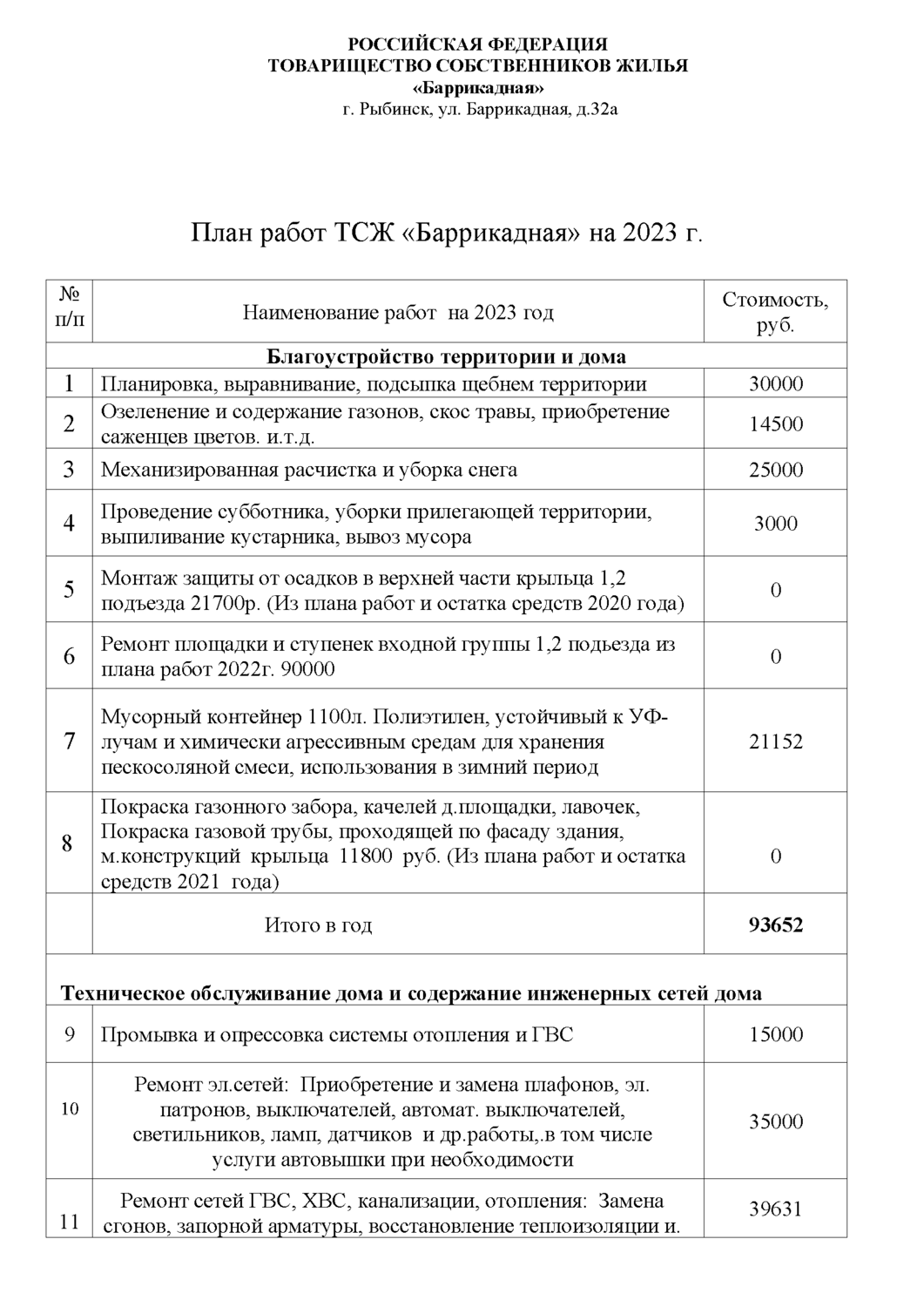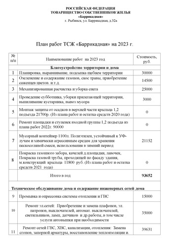 Тарифы, планы работ, отчеты ревизионной комиссии